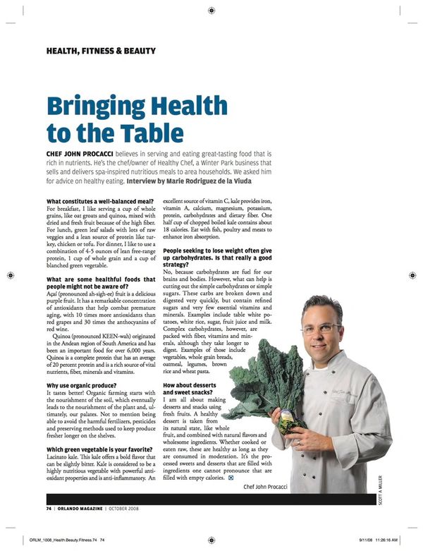 Award-winning Personal Chef John Procacci has been a professional chef in the Orlando area for over 25 years and has a reputation of excellence. He has a gift for culinary arts and loves serving delicious healthy cuisine. During his career, he has won numerous culinary awards for his healthy inspired cuisine and has been a featured chef on The Food Network, Health, Self & Newsweek Magazines.